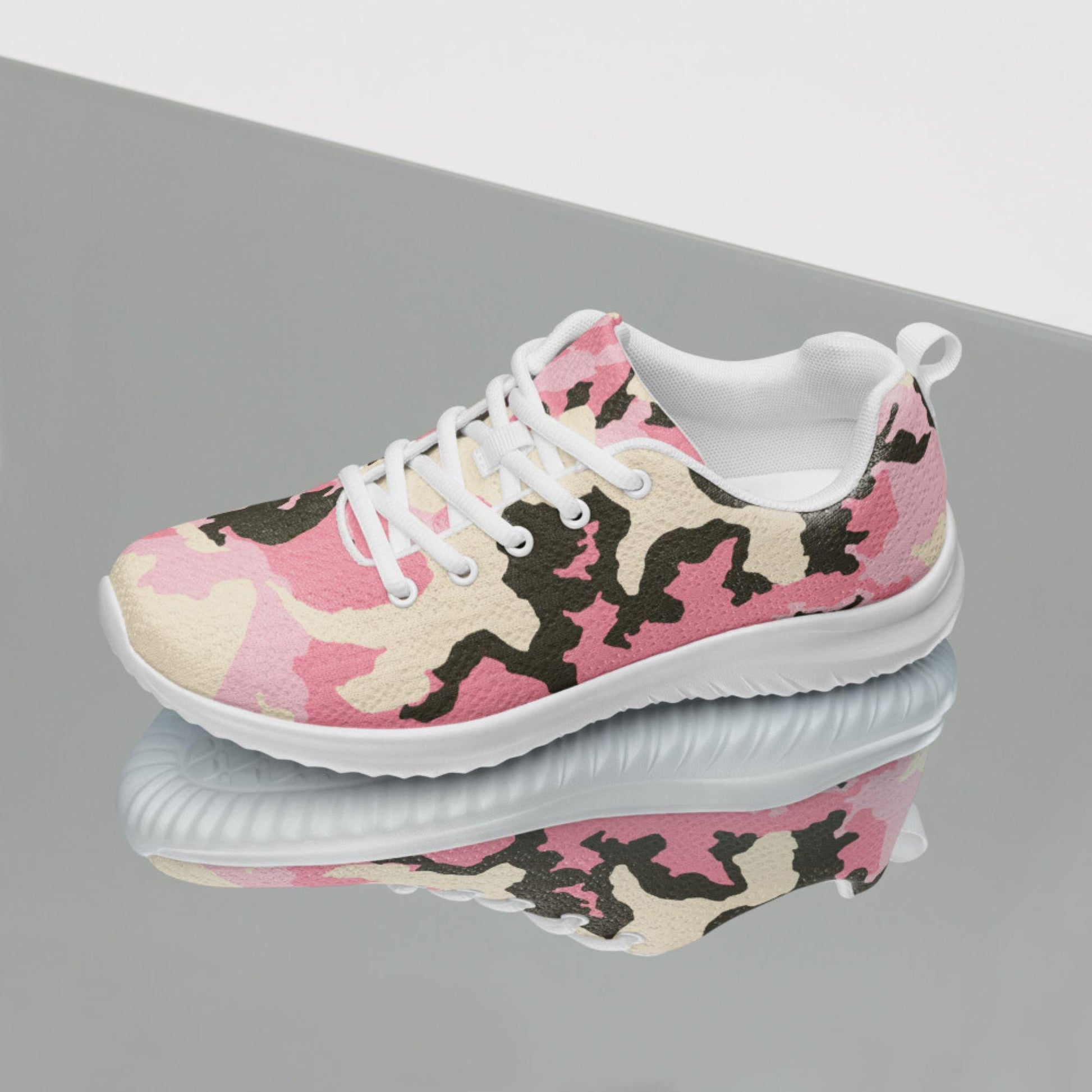 Step into style and comfort with these pink camo sneakers, designed specifically for women who want functional athletic shoes with a fresh, eye-catching look. The unique pink camouflage pattern is clearly visible in the image, blending soft rose tones with durable white soles and breathable mesh accents, making these camouflaged tennis shoes stand out in both performance and design. Perfect for everyday wear or active sports, they offer a distinct twist on classic pink camo that elevates your workout or casual outfit effortlessly.