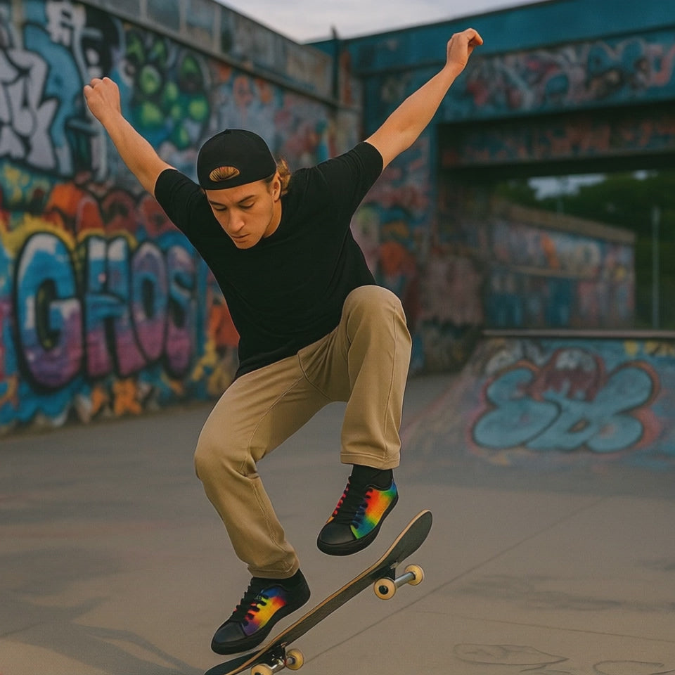 Trendy and comfortable Men's Tie-Dye Low Top Sneakers with a unique design. Perfect for casual outings and adding a pop of color to any outfit. Ideal for men looking for a stylish and colorful footwear option. Great for summer fashion, music festivals, and casual everyday wear.