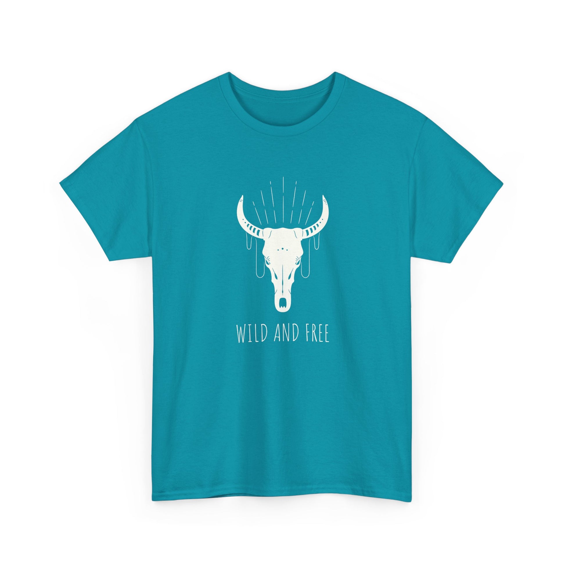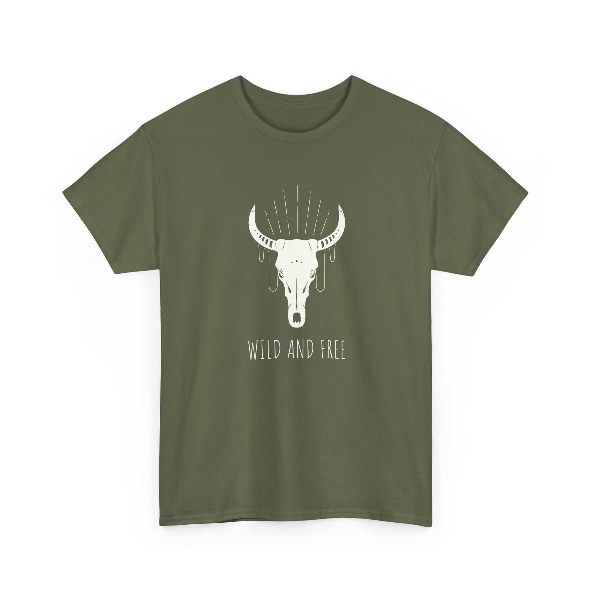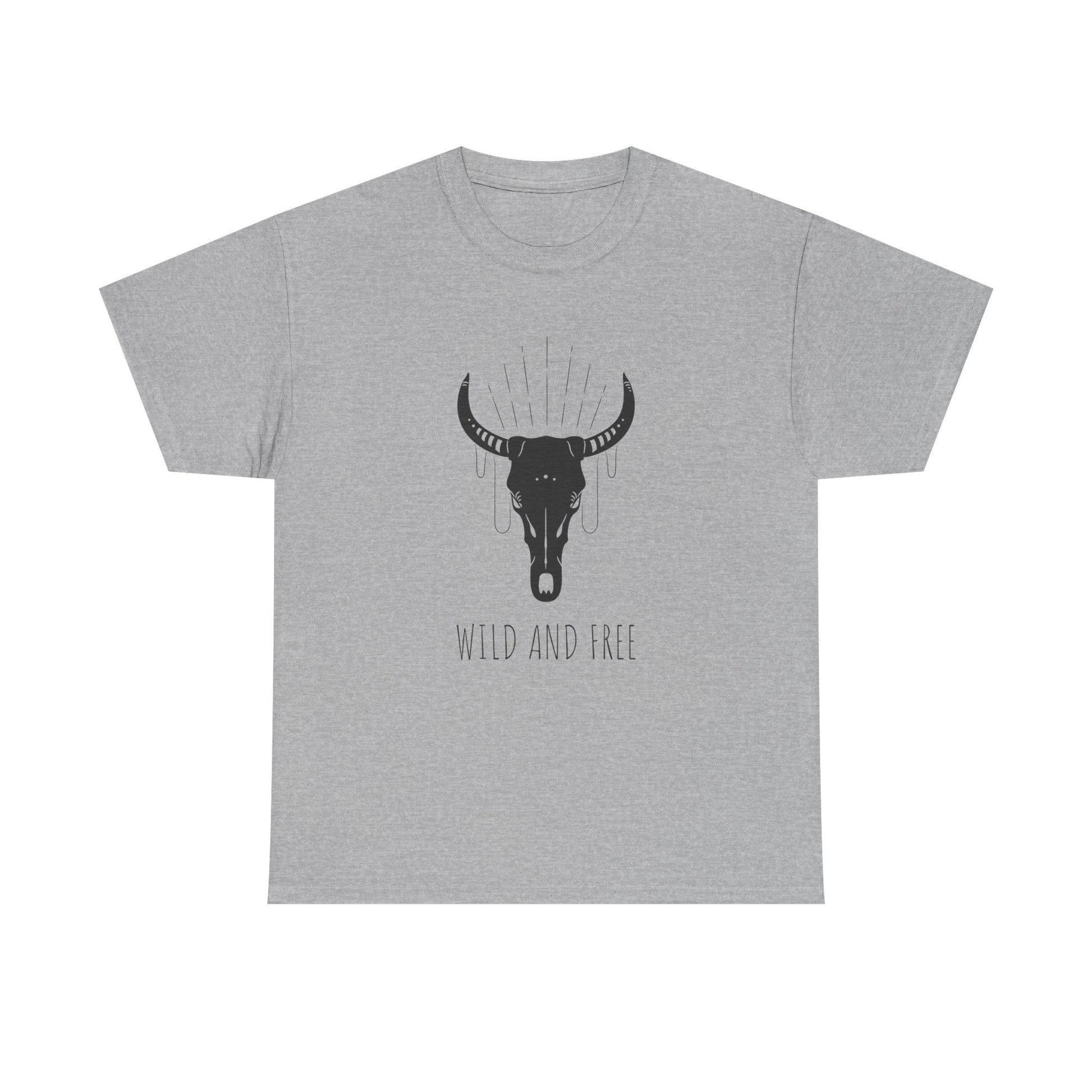 Wild and Free T-Shirt with Longhorn Skull, Boho Graphic Tee, Western Style Shirt, Perfect Gift for Nature Lovers, Unique Cow Skull Apparel